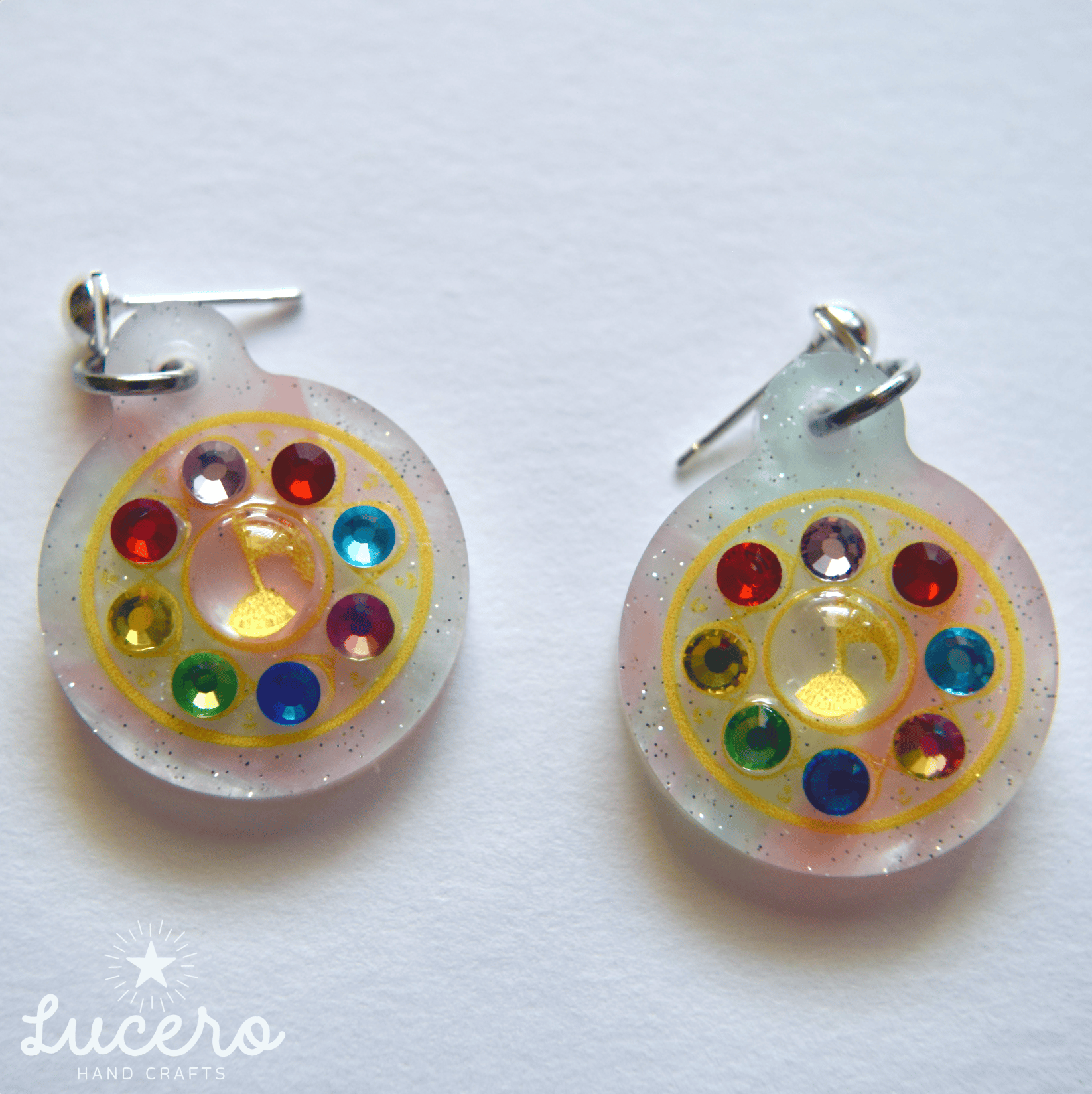 Tap your foot to the beat while wearing these adorable throwback earrings! Marbled glitter acrylic and crystal detailing make these little guys sparkle beautifully when they catch the light.